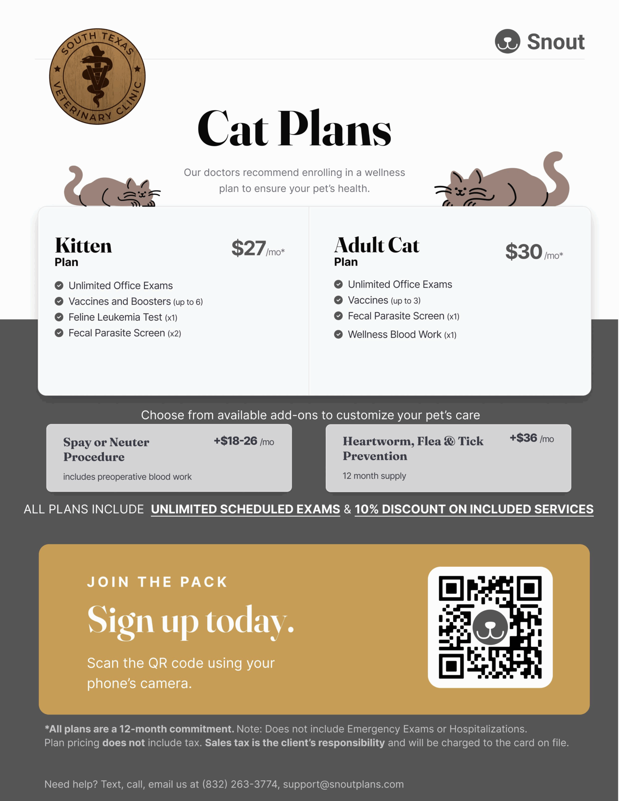 For details about our Snout Wellness Plans for kittens and cats, click here.